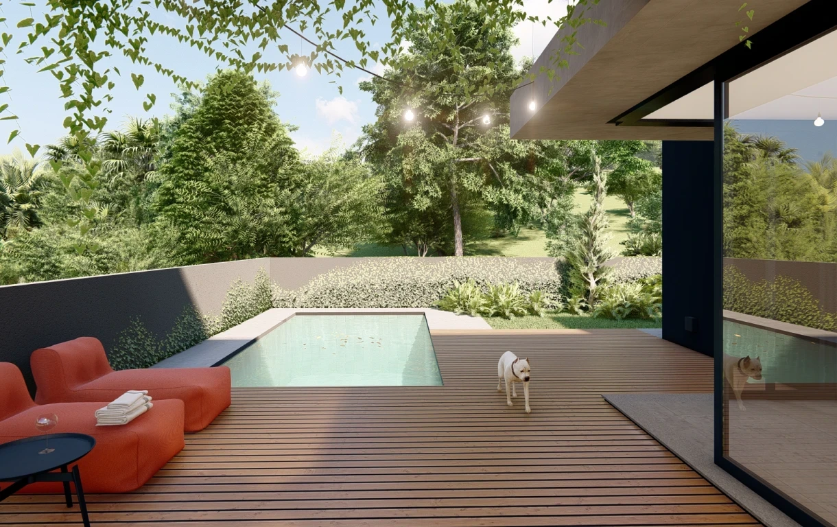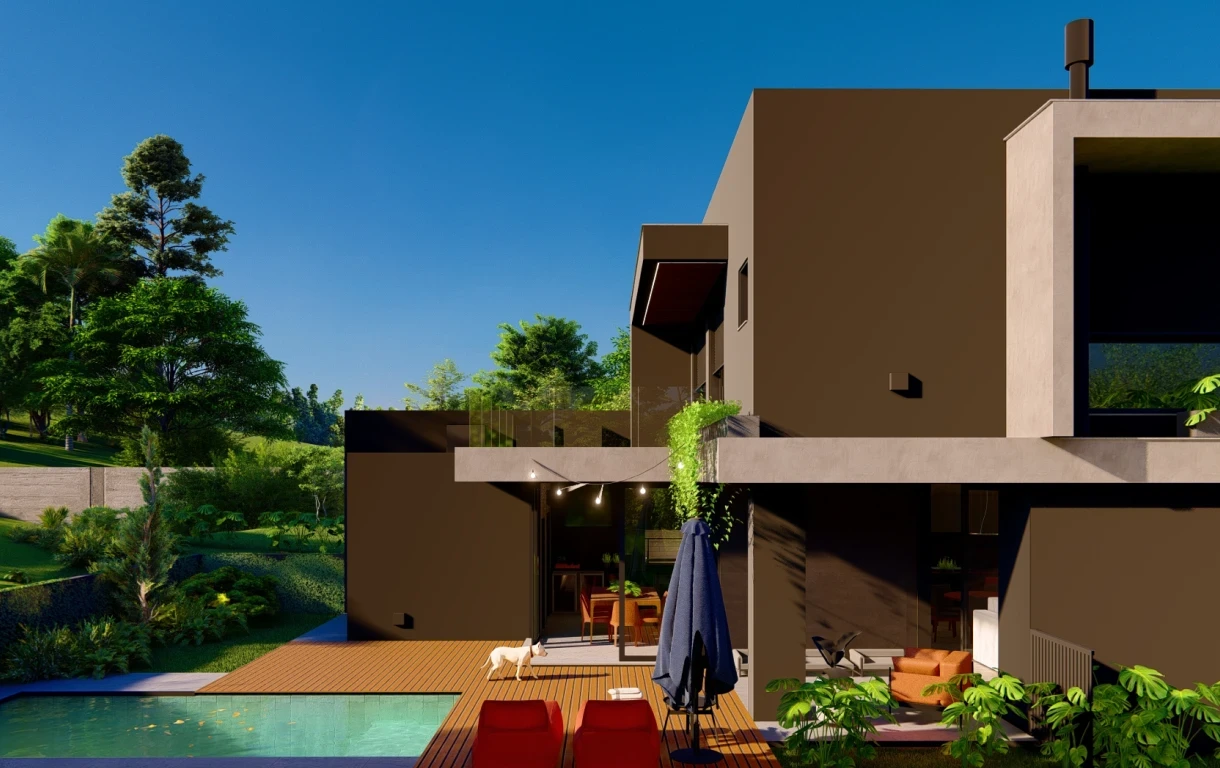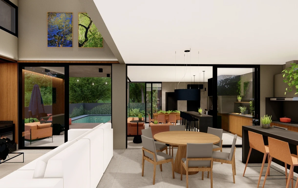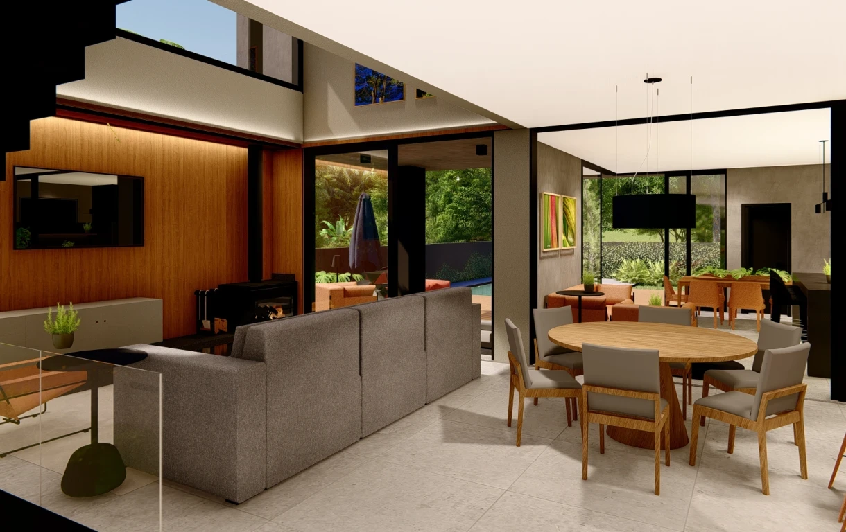 Apesar da sobriedade dos materiais e da solidez da volumetria, a madeira surge para equilibrar e aquecer a composição, trazendo um ar mais acolhedor sem perder a elegância. Uma casa cheia de estilo para uma família cheia de personalidade.